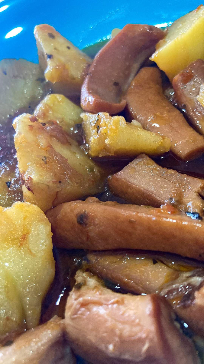 Patatas, Cebolla, Ajo, Pimiento, tomate, Sal, Pimienta, Orégano, Chocos, Colorante